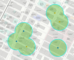 Create buffered areas and dissolve buffers that intersect or have the same field value using the ArcGIS GeoAnalytics Server tool Create Buffers.